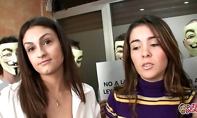 2 good friends tease each other 2 College gals who were made to cum alternately in frnt of their friends