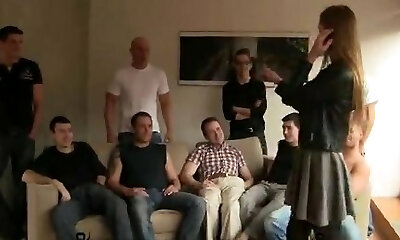 Frenc first-timer bukkake with cumshot