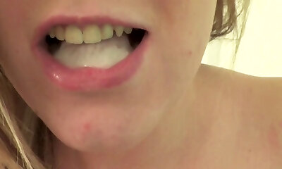 rosy-haired schoolgirl maazing blowjob takes the sperm on the face