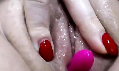 erstaunlich große schamlippen flattern, als sie zum orgasmus wichst
